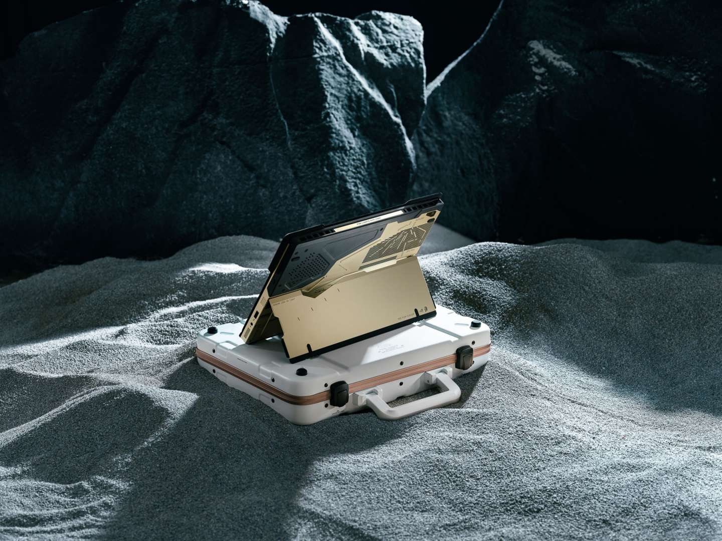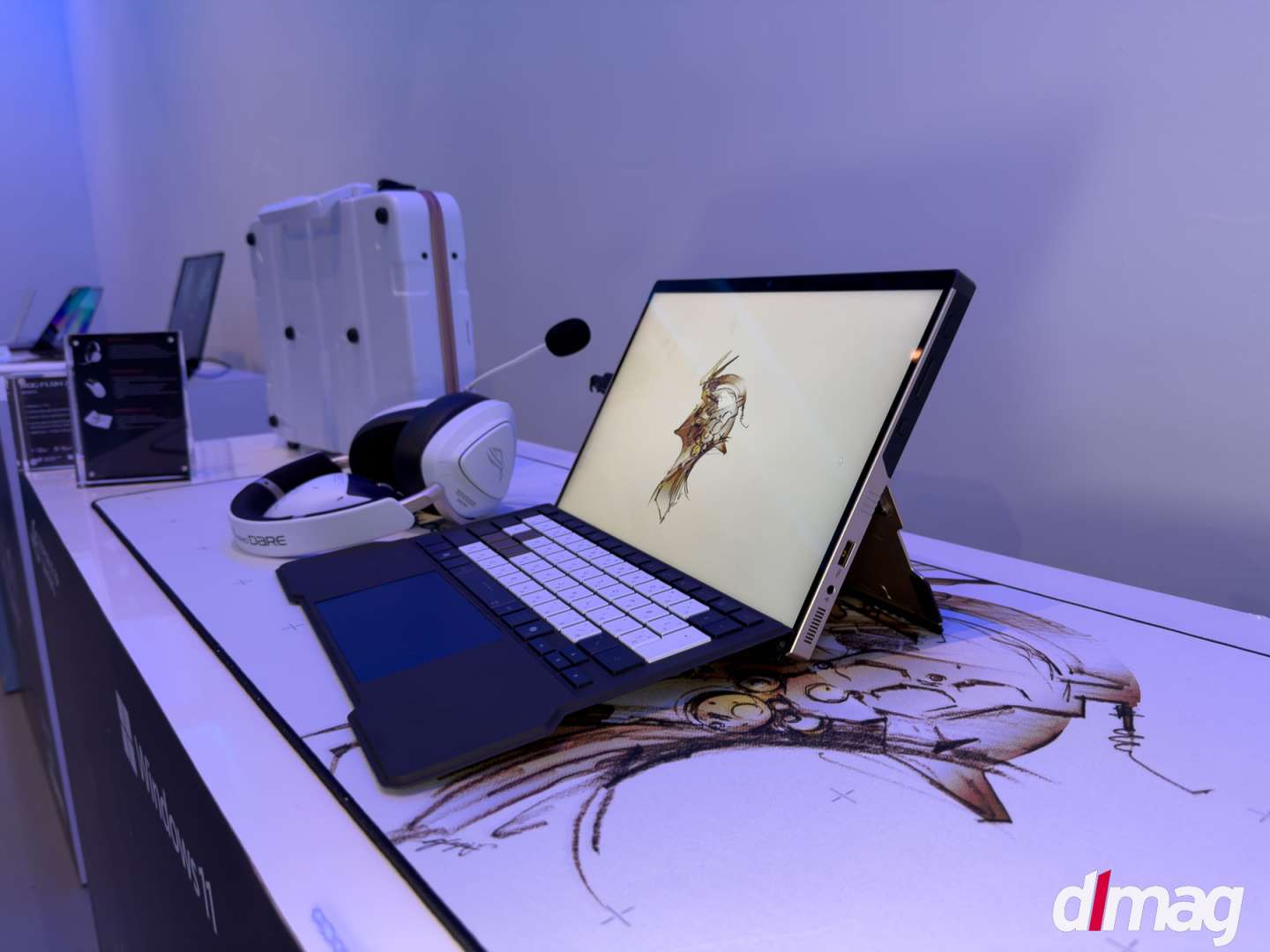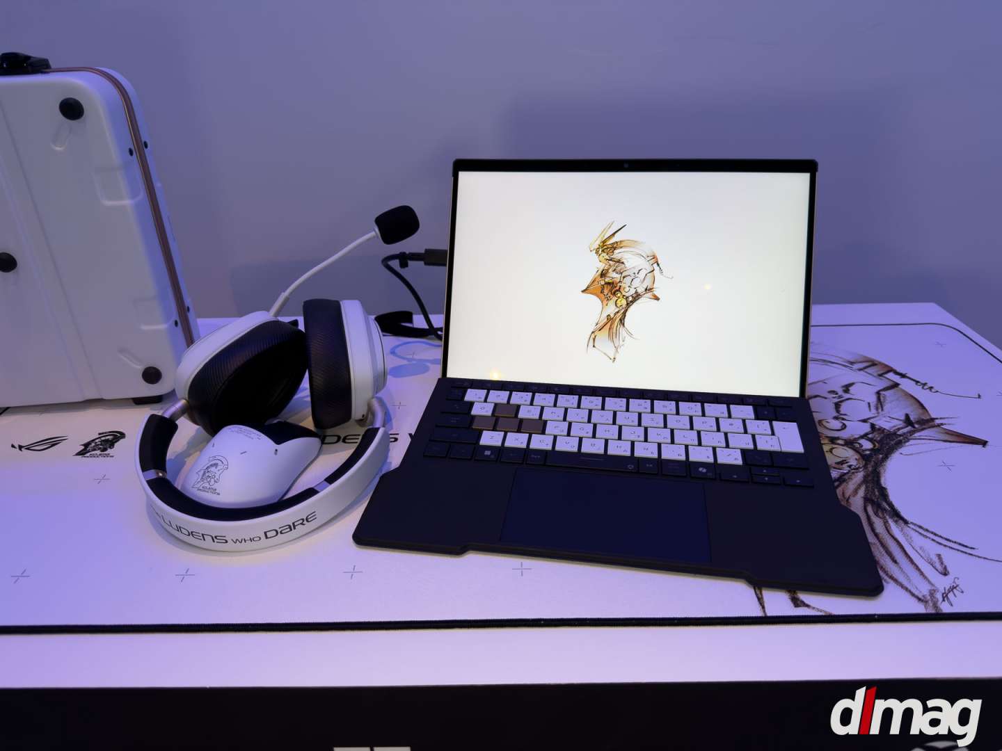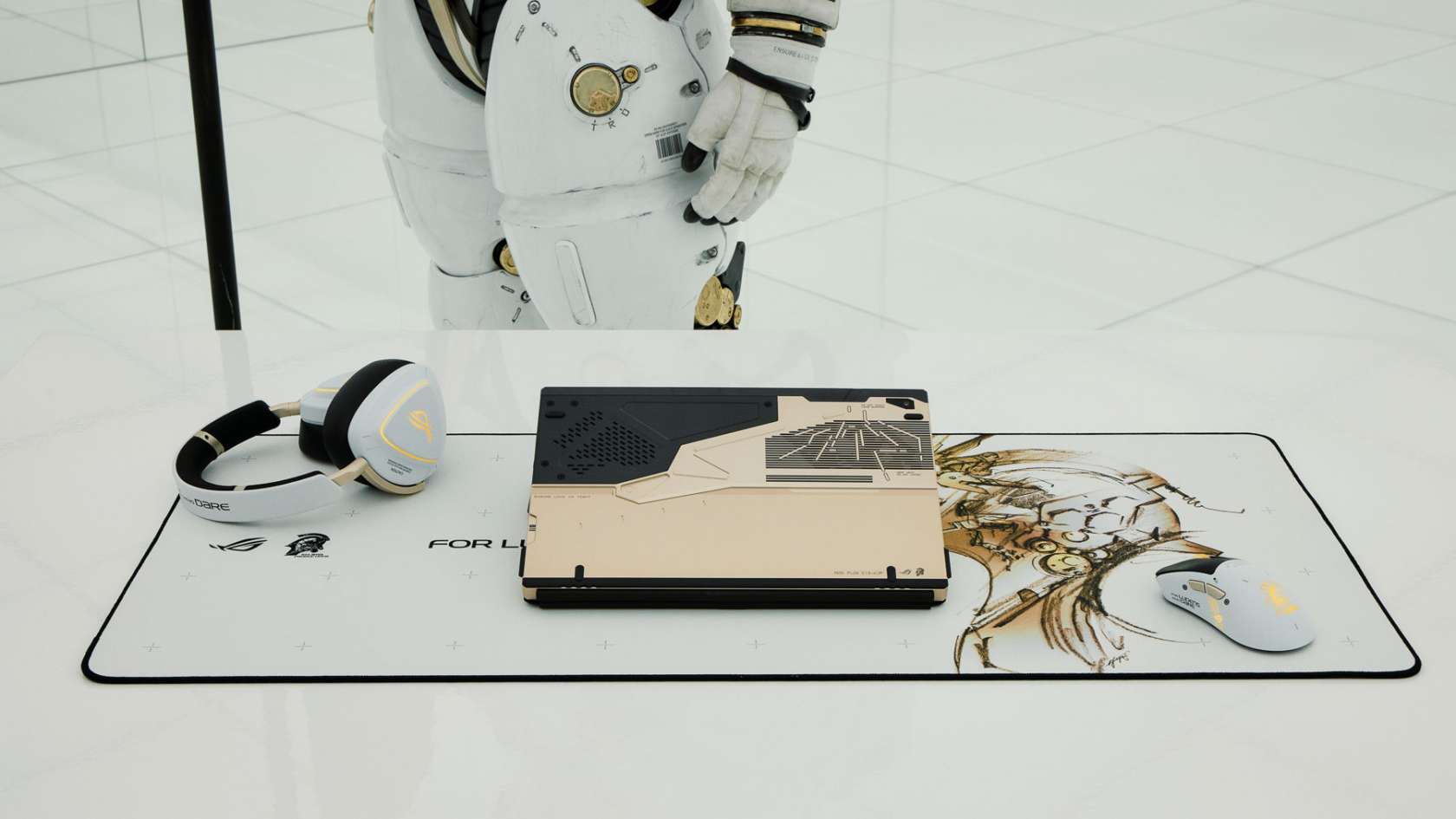 The ASUS ROG Flow Z13 Kojima Productions Edition is the most tangible expression of that shift. It isn’t a gaming laptop with a logo slapped on the lid. The entire device was designed in collaboration with Kojima Productions and Yoji Shinkawa, whose illustration work defined the visual language of Metal Gear Solid and Death Stranding. The chassis is CNC-milled aluminum paired with carbon fiber, materials chosen for texture and weight as much as durability. Shinkawa’s artwork is integrated into the physical design rather than printed on top of it. The packaging, the accessories, even the peripheral ecosystem (a matching ROG Delta II KJP headset and branded peripherals) are treated as components of a single creative vision. This is hardware as world-building, the same philosophy Kojima applies to game environments translated into the object you hold in your hands.